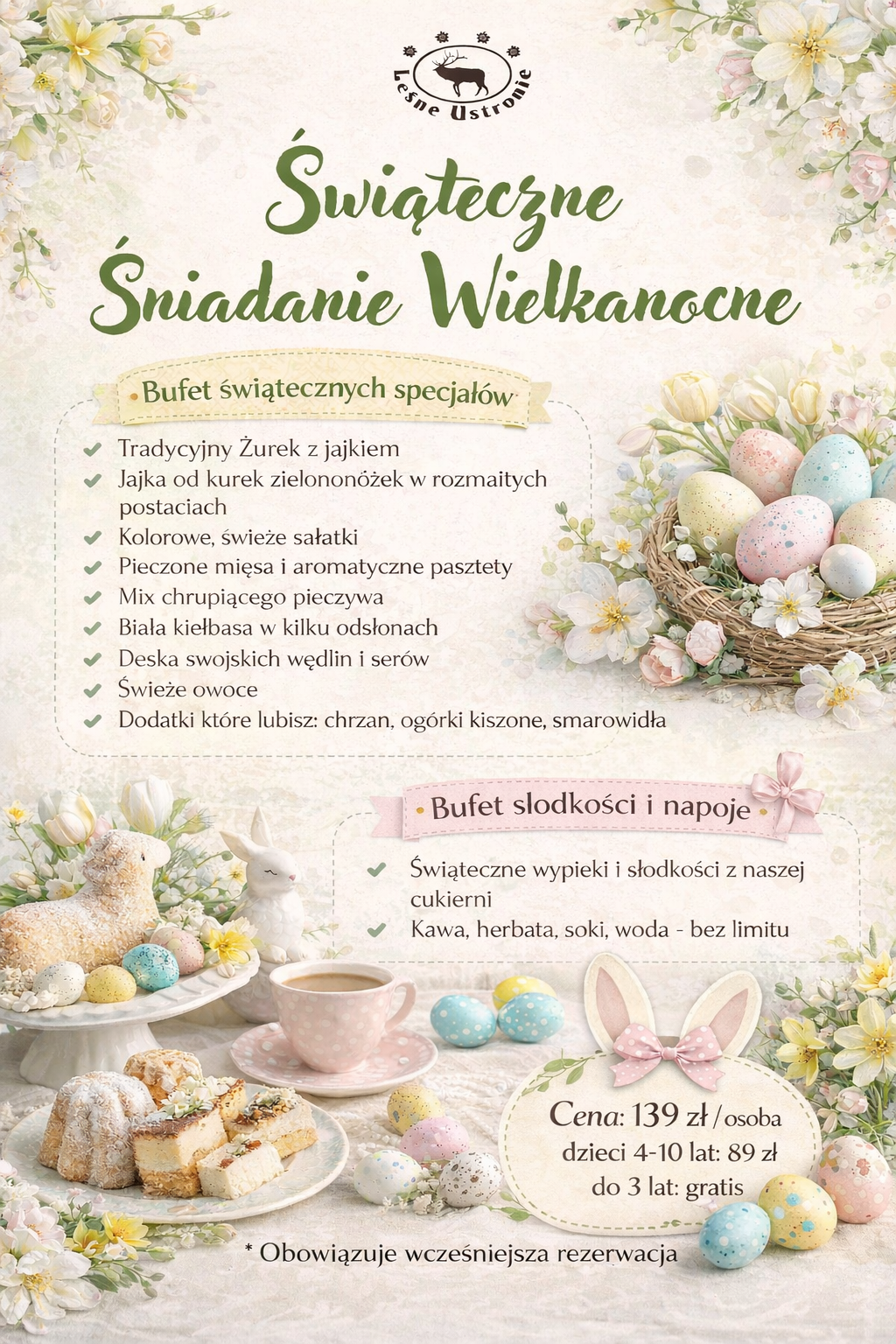 Na Waszych stołach pojawią się pachnące wypieki, tradycyjne wielkanocne przysmaki i mnóstwo świeżych, pysznych dodatków — wszystko przygotowane z myślą o wspólnym, spokojnym świętowaniu