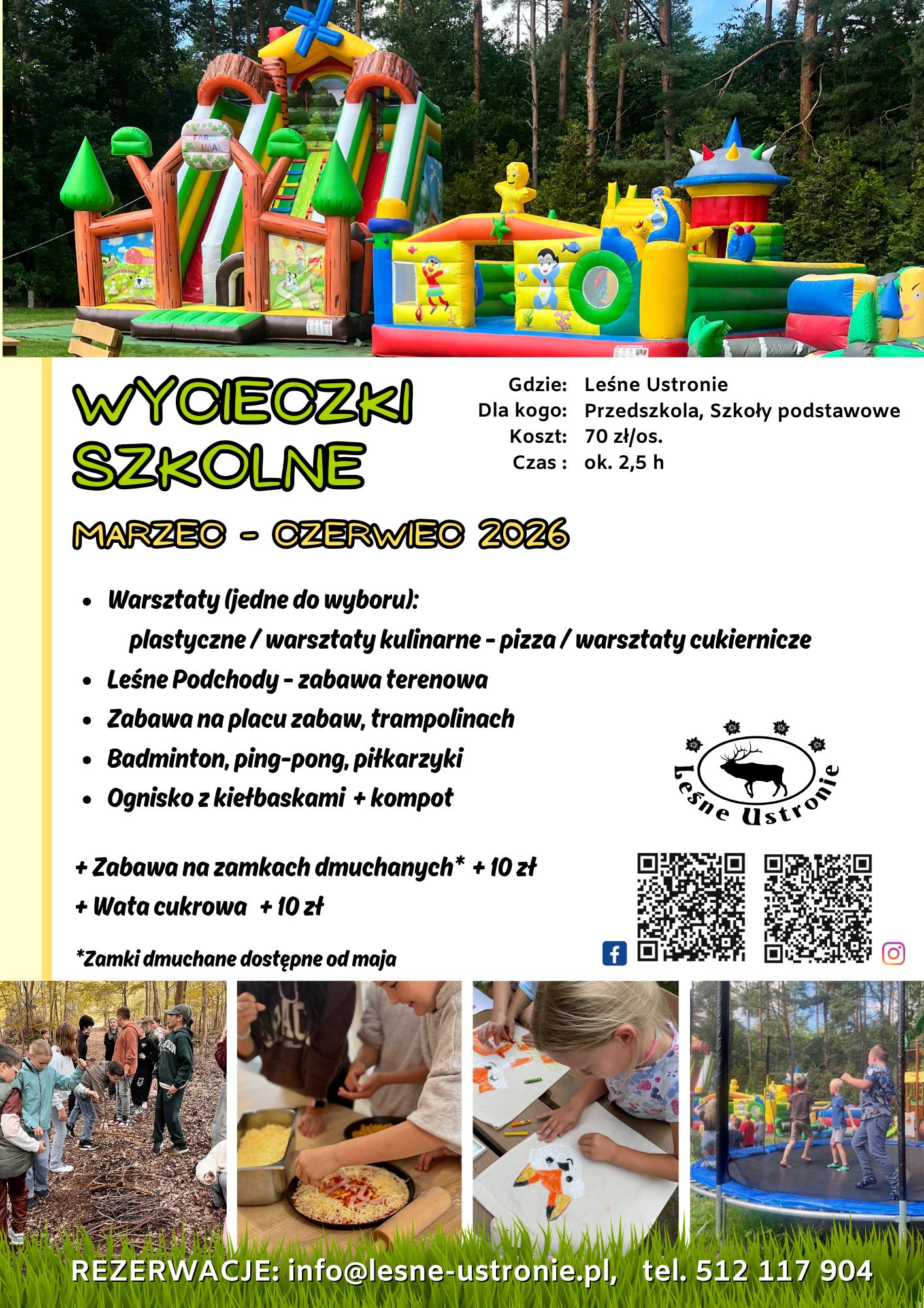 Leśne Ustronie to idealne miejsce do organizacji wycieczek szkolnych. Oferujemy wyjątkowe warunki, które pozwolą Państwa uczniom nie tylko świetnie się bawić, ale również rozwijać swoje zainteresowania i zdobywać nowe doświadczenia.
